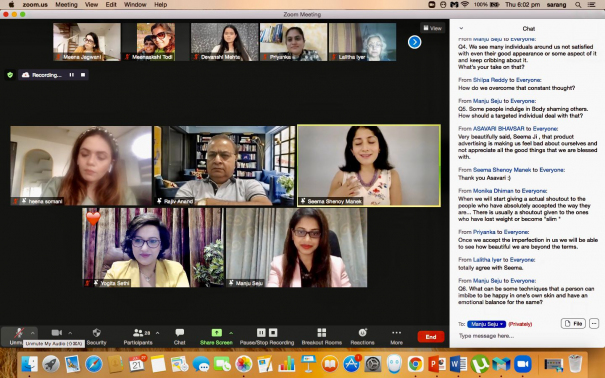 IMPA Ahmedabad Chapter organized a Panel Discussion on "Body Image, Self-regard and your Sense of Worth" on July 21st 2022. The session aimed at Body Positivity and how to develop a healthier, more positive and a more inclusive relationship with your body. It also explored various aspects of Body Image issues and how it affects one's self-image and ways to develop a positive Body Image and enhance one's sense of worth and Self-image. The panellists were Ms. Heena Somani (Influencer and Image Consultant), Ms. Seema Shenoy Manek (NLP Master), Dr. Rajiv Anand (Psychiatrist). The session was moderated by Chapter President - Ms. Yogita Sethi and Chapter Secretary - Ms. Manju Seju.