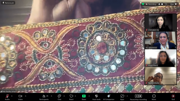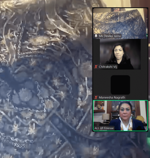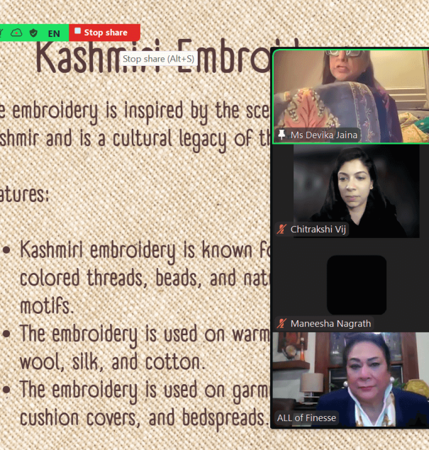 Held virtually on Zoom, the session provided an enriching exploration of the diverse embroidery heritage of India and its application in wedding fashion.