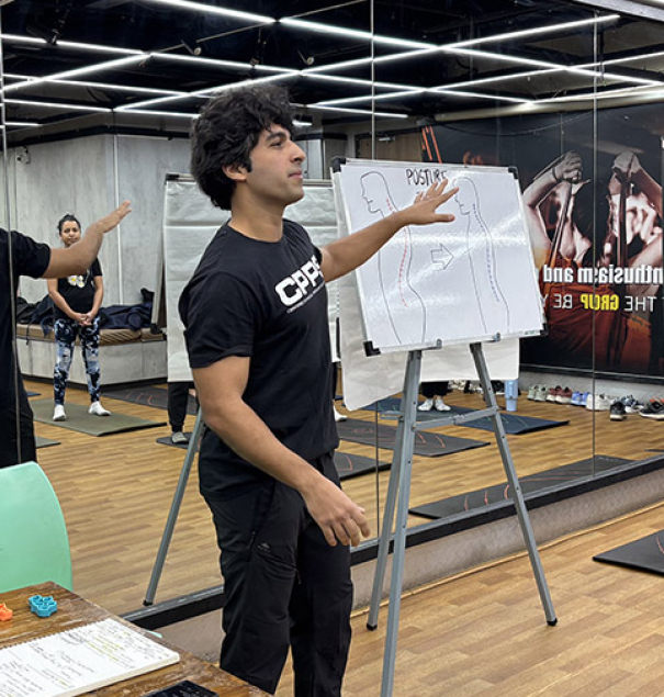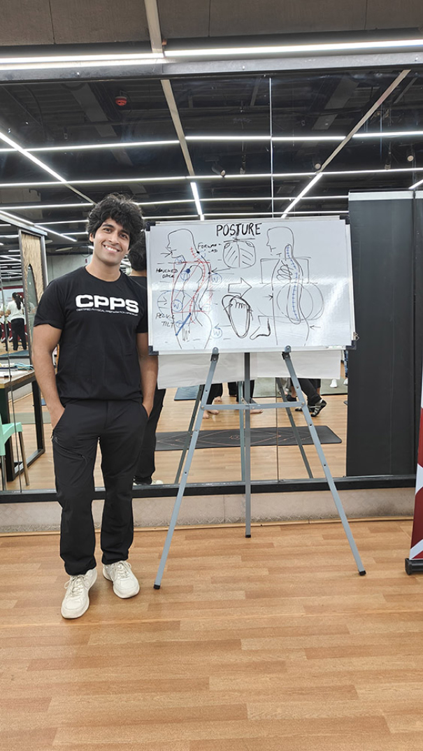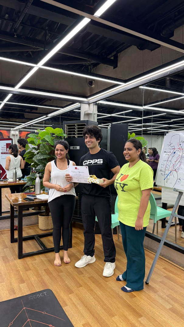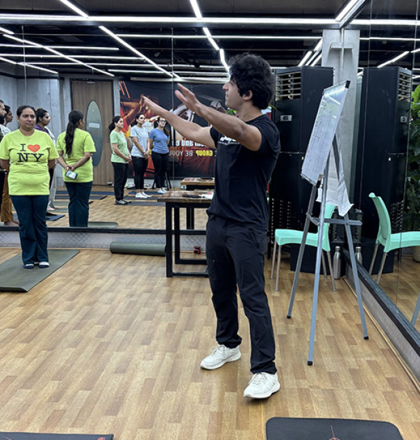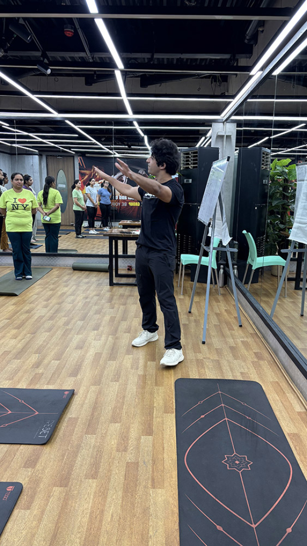 Participants actively identified common poor postures, explored their underlying causes, and understood the physical and psychological consequences they lead to. Vidhu then demonstrated practical posture correction and strengthening exercises—ideal for trainers, consultants, and professionals who spend long hours at their desks. His toolkit included desk-friendly movements and mobility drills that can be seamlessly incorporated into everyday routines.