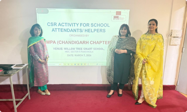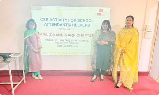 The Chandigarh Chapter successfully conducted the “Maid in Heaven” training program at Willow Tree Smart School, Panchkula, across two branches — Sector 12A and Sector 5, MDC Phase 3. The session was designed for the school’s support staff, including housekeeping personnel, peons, drivers, and school nannies.