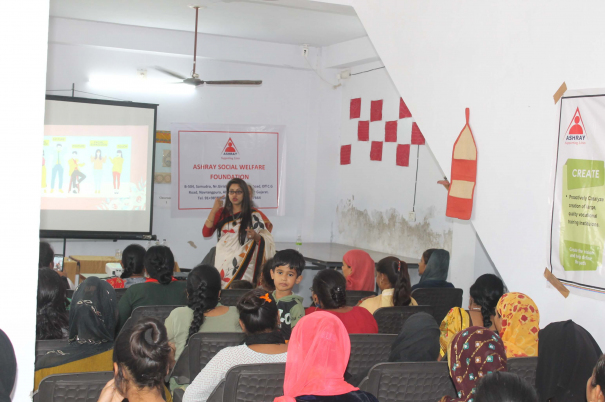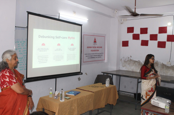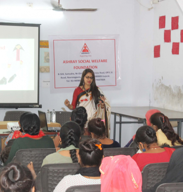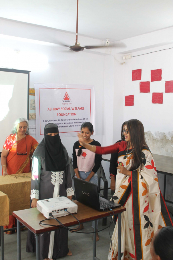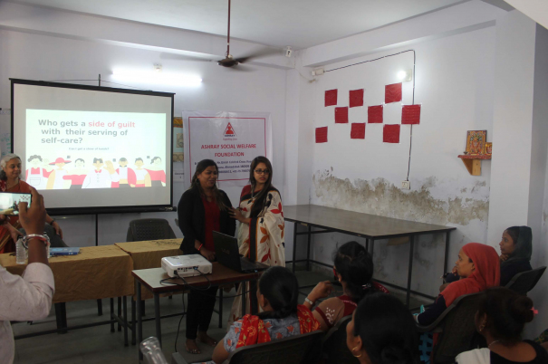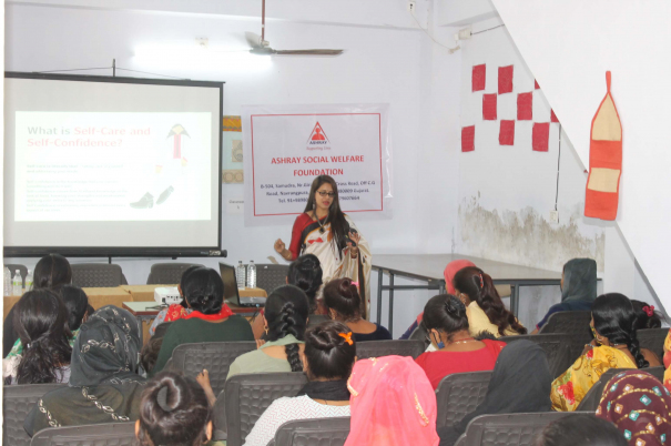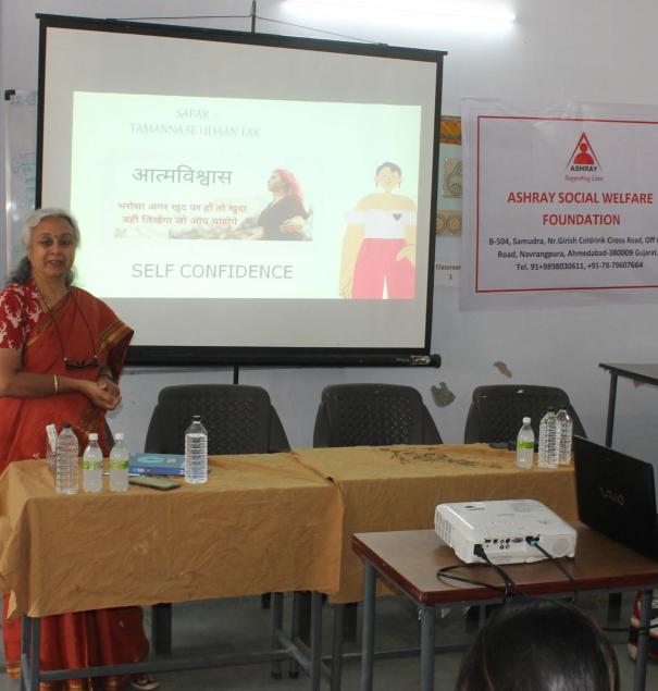 The session was conducted for underprivileged women and girls from the surrounding areas who are given vocational training at the Skill Development Centre, which is run under the Prime Minister’s Skill India Project. Although the women and girls are skilled, they lack self confidence and have a very low self image.